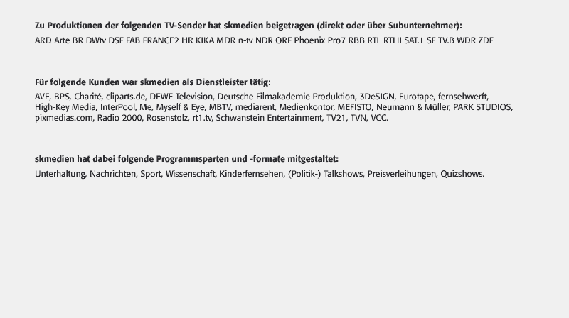 VitaArbeitsprobenKontaktFernsehenIndustriePrintProduktionGrafikConsulting
